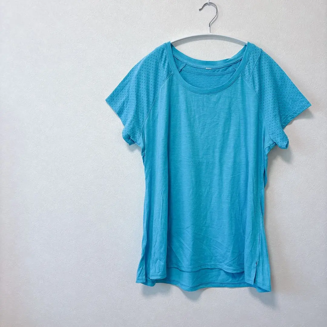 ライトブルー ラグランスリーブ Tシャツ スポーツ 半袖 カットソー