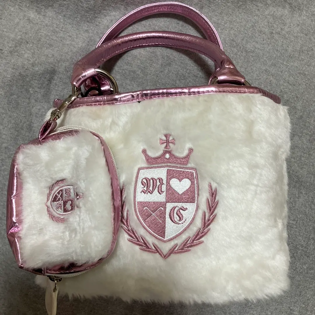 ミズノゴルフ カードバッグ 秋冬フェイクファーリボンポーチ付きホワイト✖️ピンク