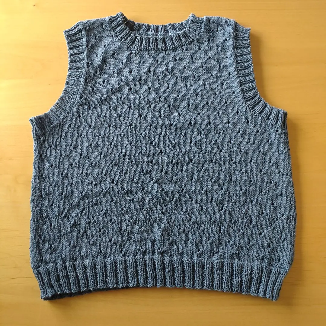 アイレット模様のベスト デニム色 ハンドメイド
