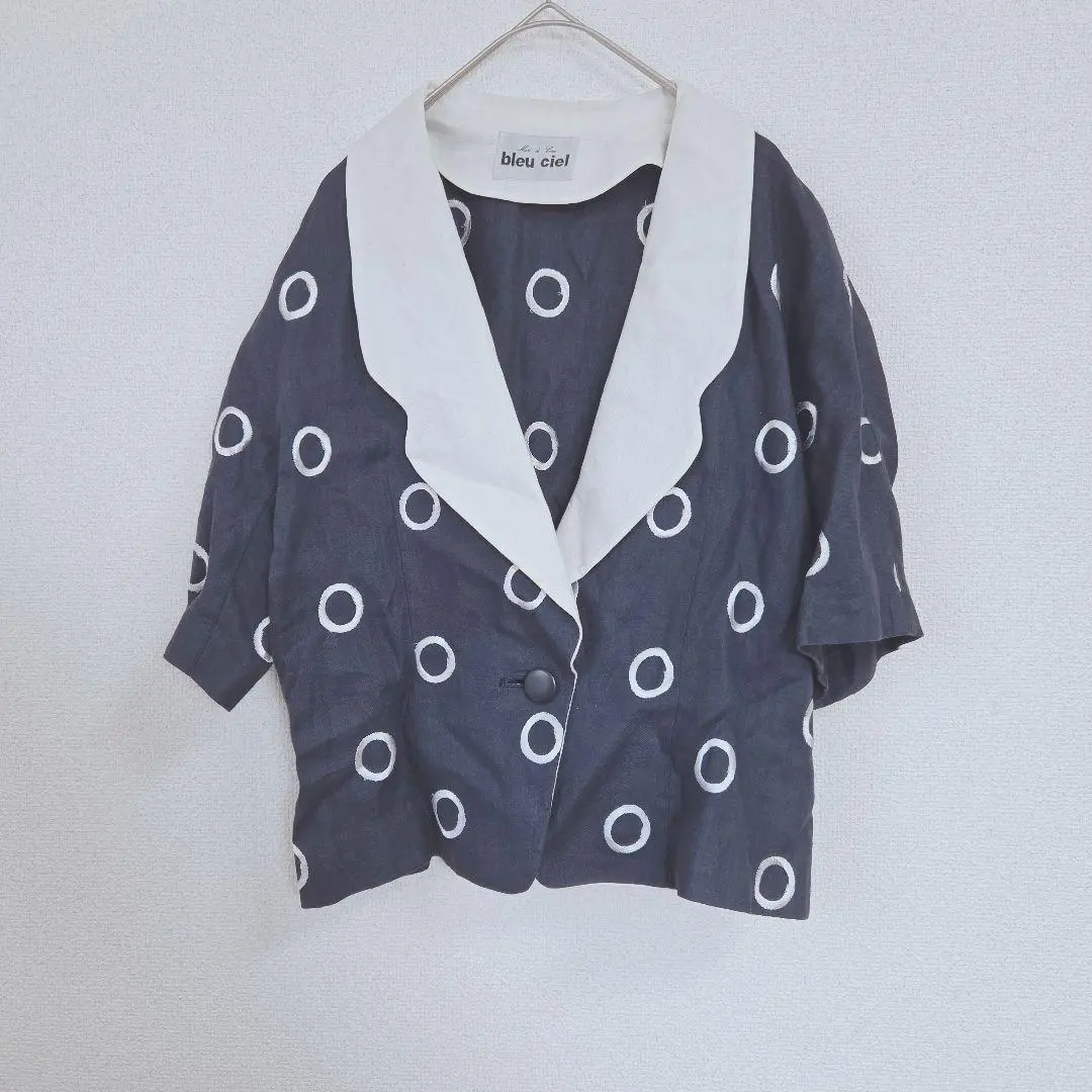 麻 ドット ジャケット ネイビー ホワイト フロントボタン 薄手