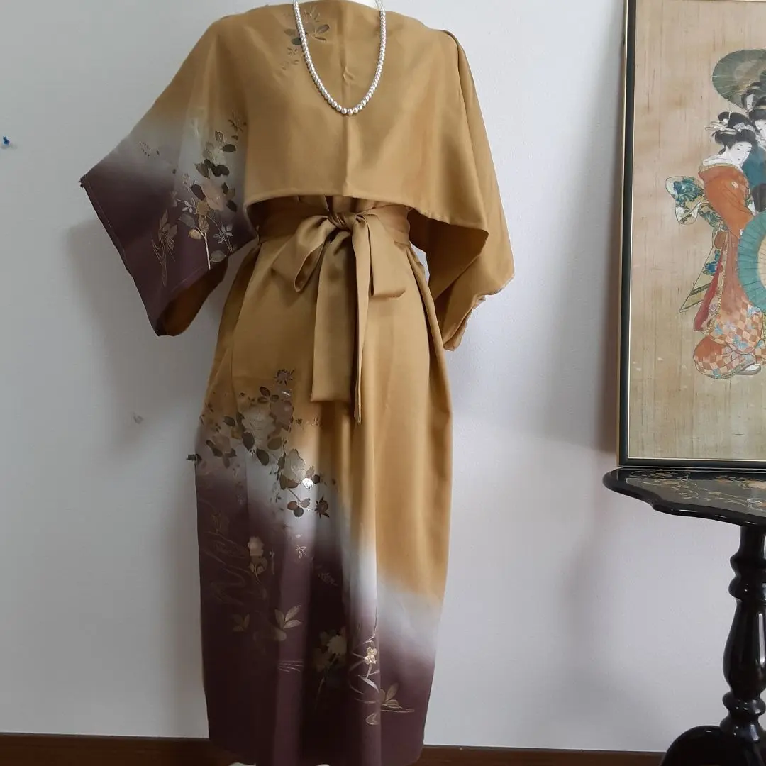 リメイク着物ロングワンピースボレロ付きL正絹叩き染め