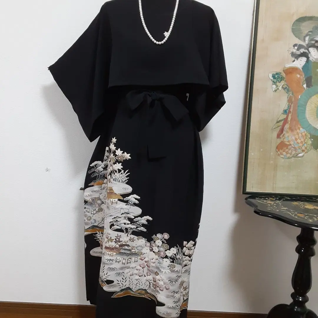 リメイク着物ロングワンピースボレロ付きL正絹作家者