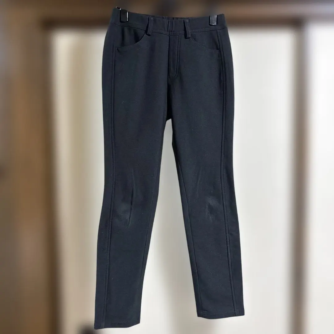 セシール レディース裏起毛ハイパーストレッチストレートパンツ サイズM ブラック
