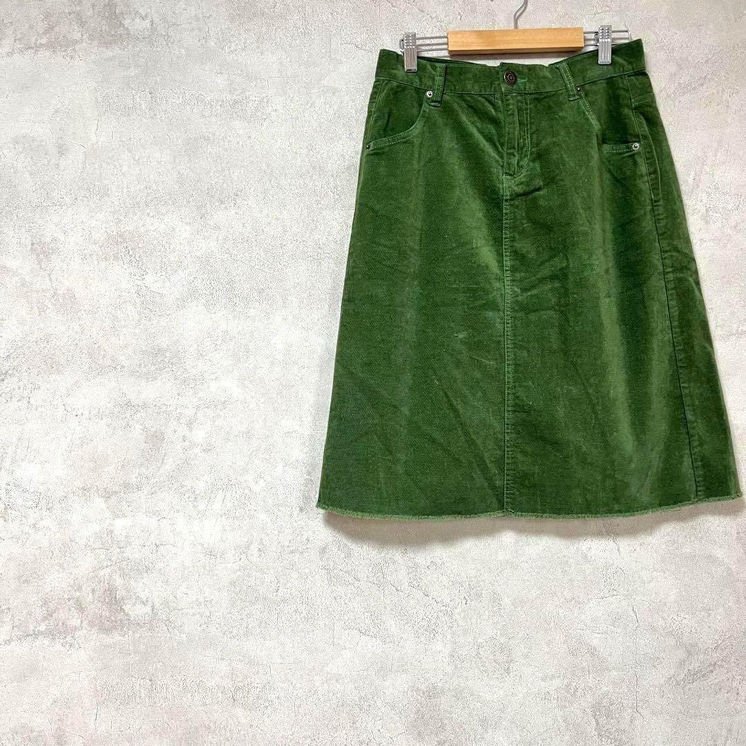 ソウルベリー 大きいサイズ ひざ丈スカート ベロア 緑 切りっぱなし 秋冬