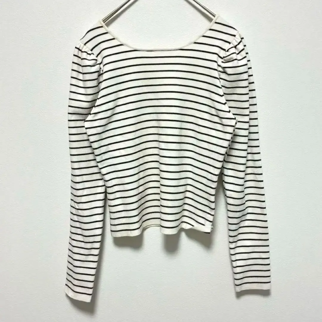 ココディール カットソー 長袖 ボーダー 白 茶色 バレエネック ショート丈 M