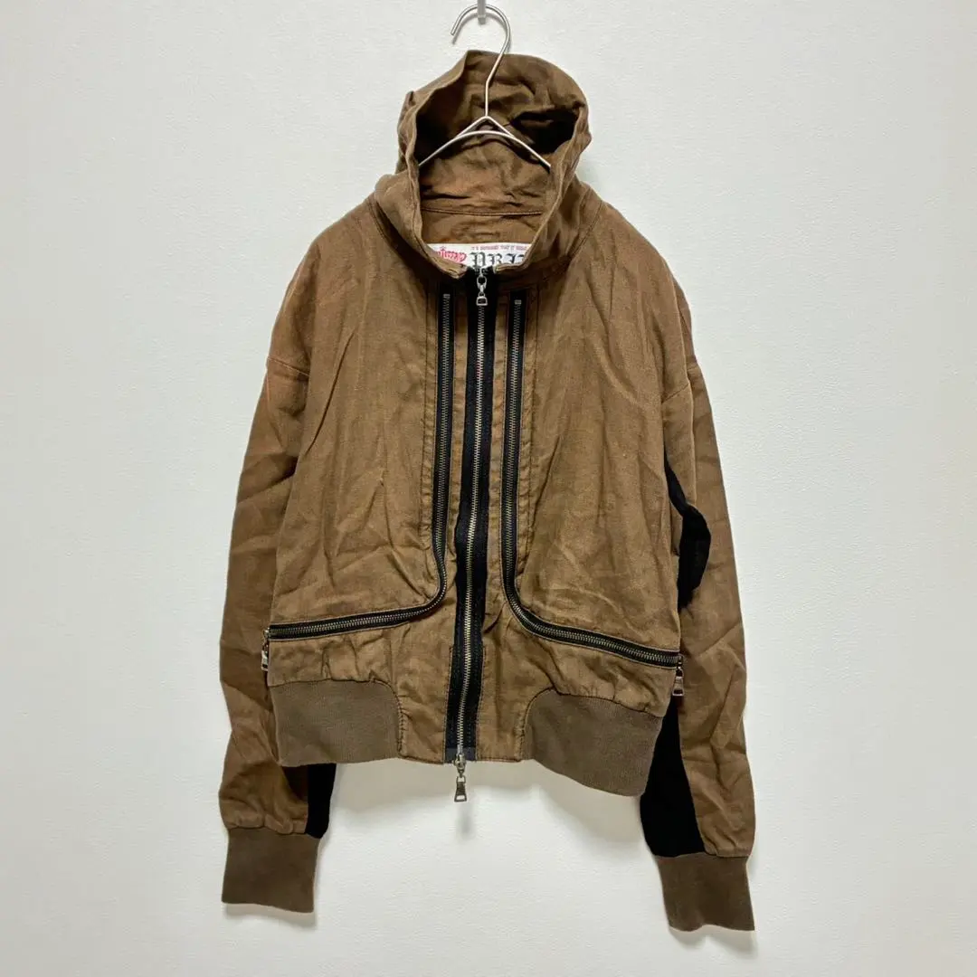 プライド 麻100% ジャケット ハイネック 茶色 黒 ショート丈 綿100%