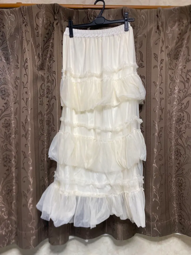 ティアードロングスカート ホワイト レーススカート ふわふわスカート
