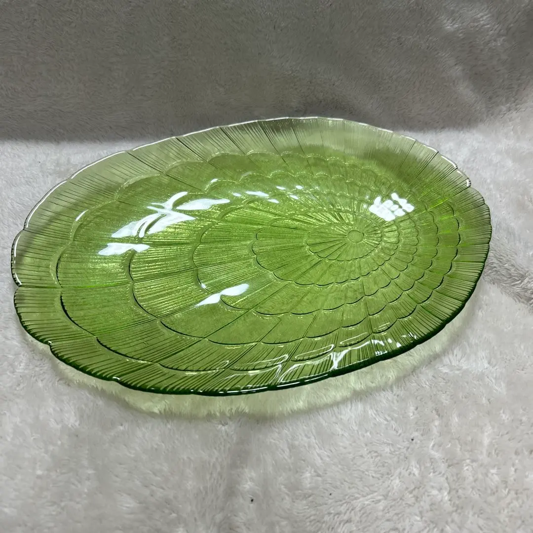 ★□ 皿 オーバル 大皿 食器 ガラス 透明 緑 おしゃれ デザイン キッチン