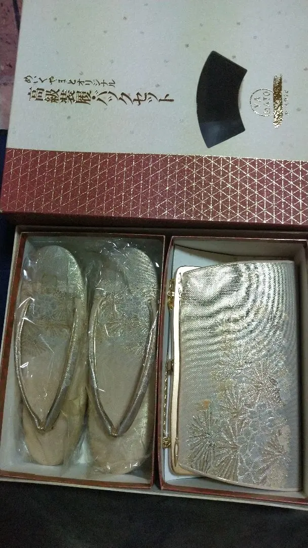 メイクやまと草履とバッグのセット ゴールド 花柄
