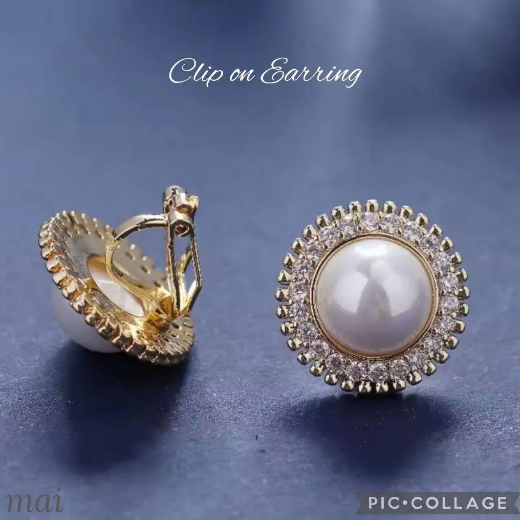 パール ラインストーン 上品 クラシック イヤリング ゴールド
