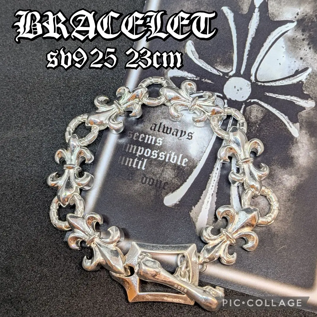 シルバー925 フレア ブレスレット メンズ 重厚 アクセ 百合 ヴィンテージ