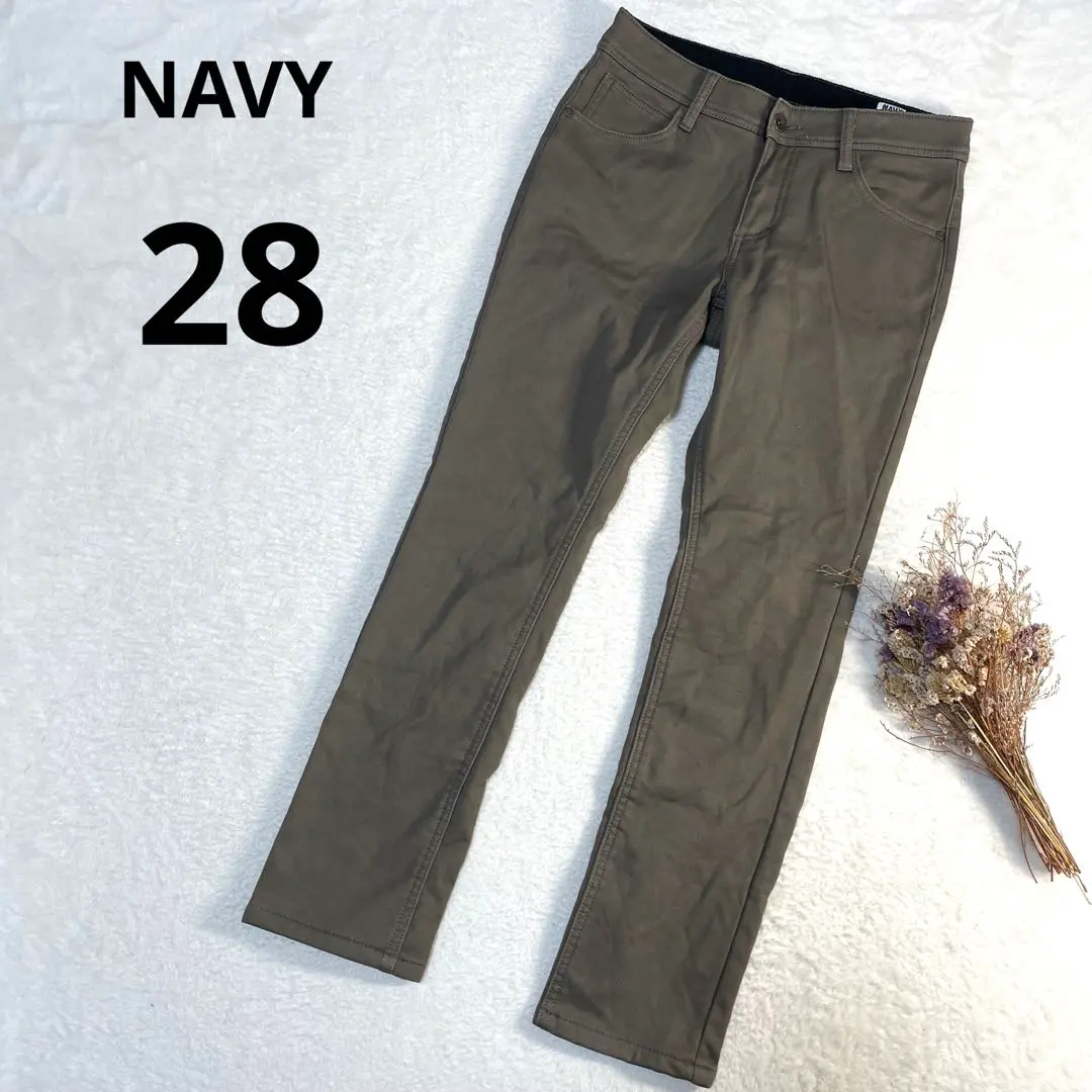 ネイビー NAVY ストレートカジュアルパンツ 裏起毛 カーキ スリム 28