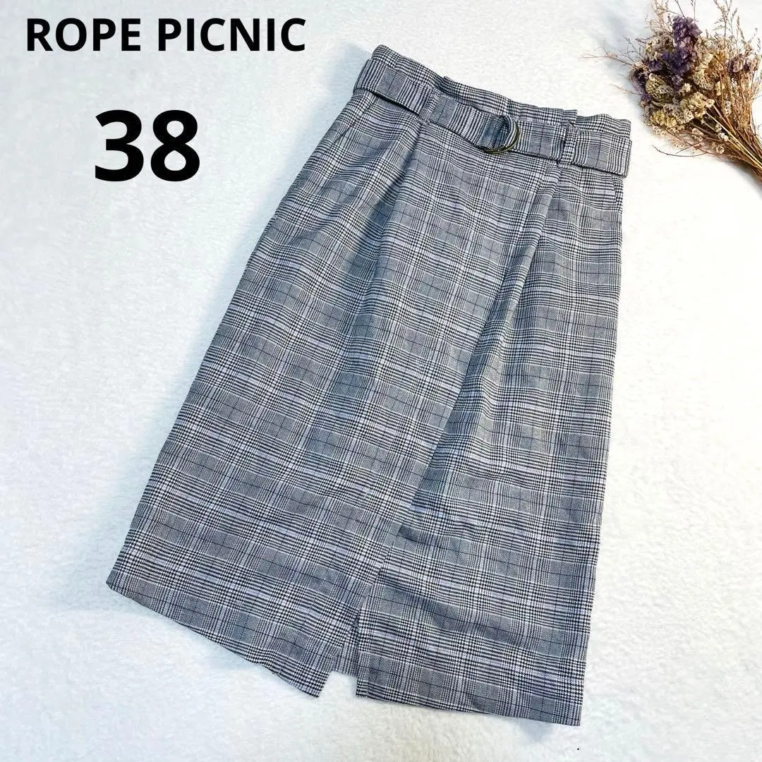 ロペピクニック ハイウエストタイトスカート フロントスリット ベルト付きチェック