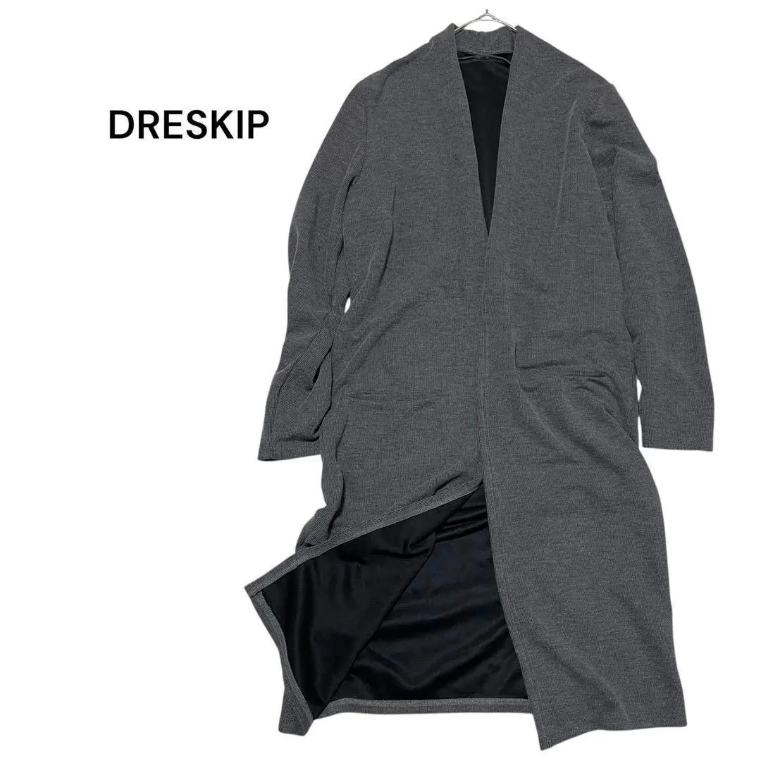 ドレスキップ☆長袖ロングカーディガン リブ ボタンレス 羽織り 伸縮性 Mサイズ