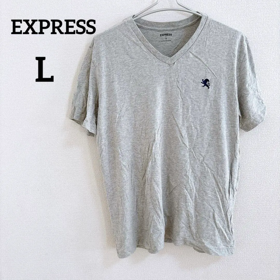 EXPRESS 【L】グレー Vネック Tシャツ 半袖 シンプル 無地