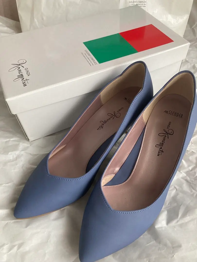 2❌銀座かねまつ パンプス 23.5cm マーブル模様ヒール