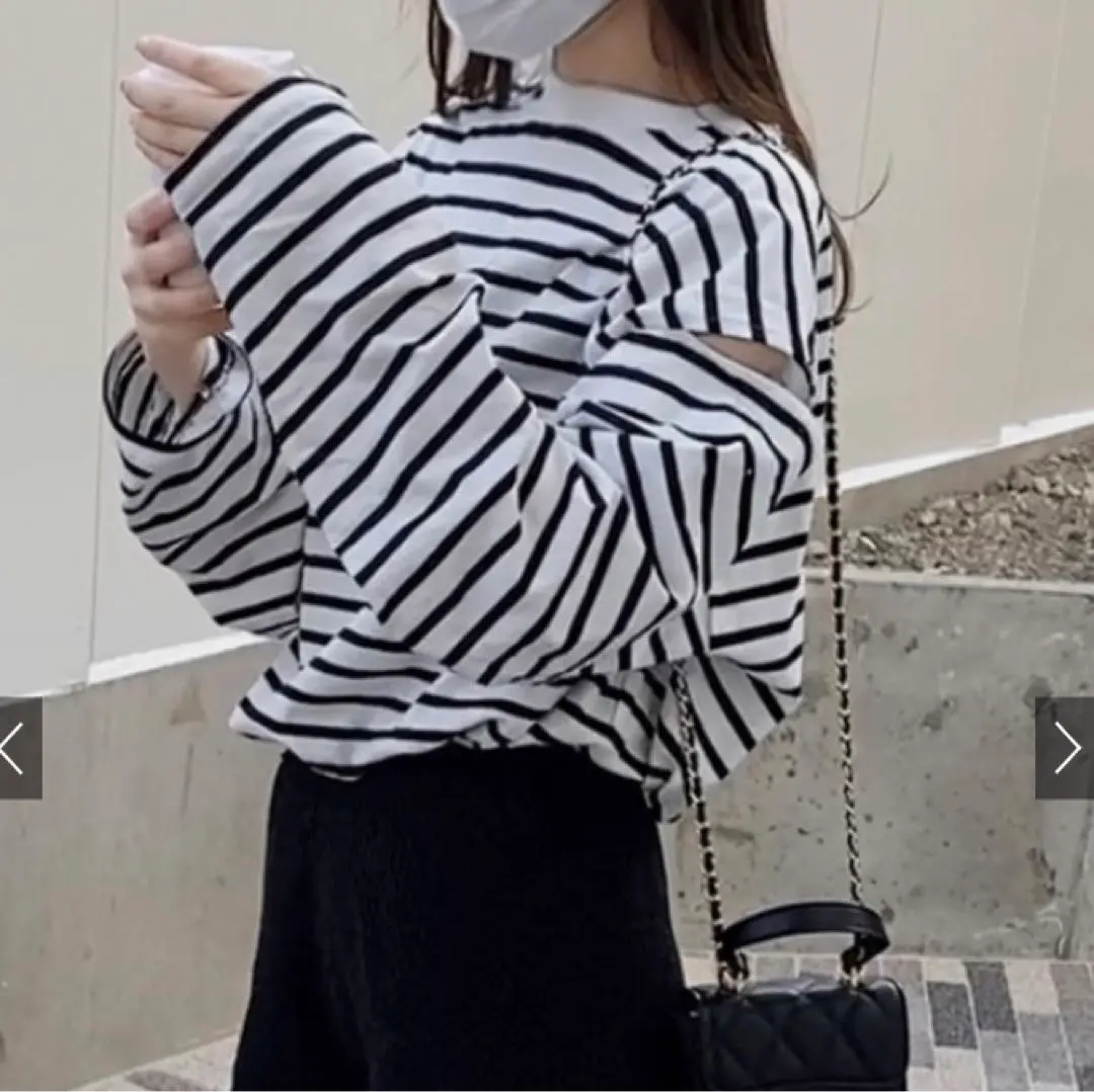 [No.141]ボーダー柄ショルダースリットトップス 長袖Tシャツ ロンT