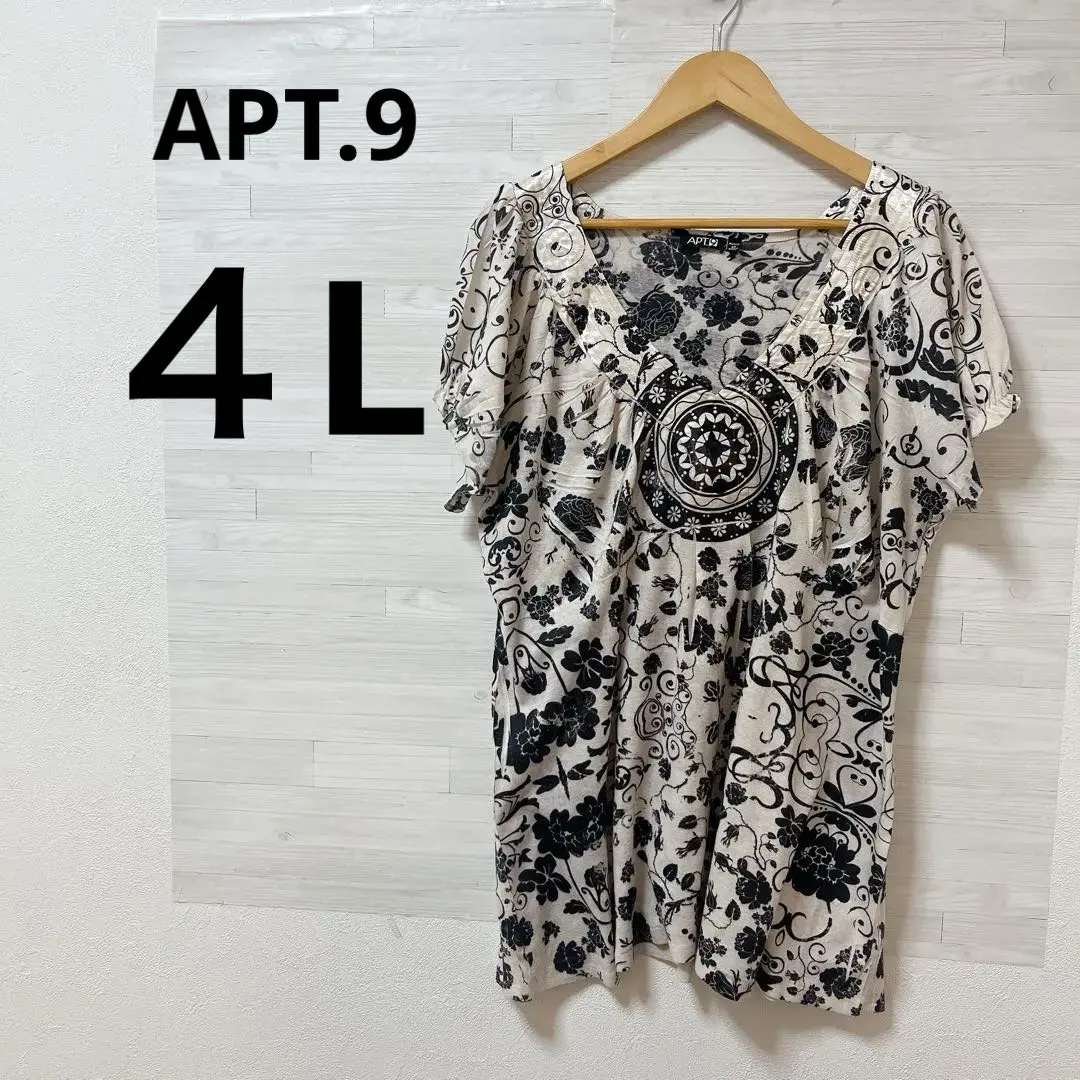APT.9 [4L] フラワー柄チュニック 3Xサイズ 半袖