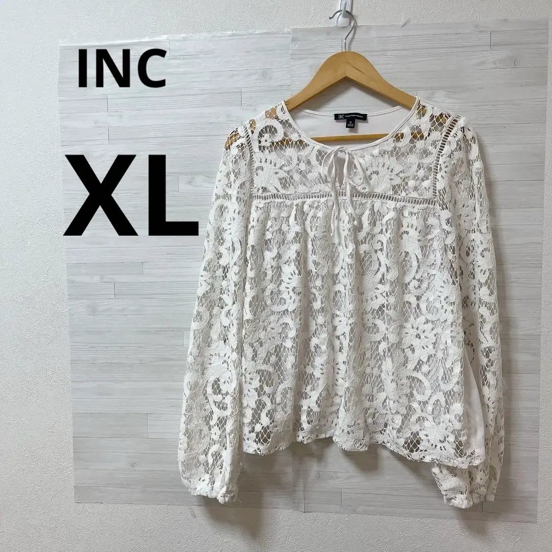 INC [XL] レースブラウス カットソー ホワイト白 ガーリー