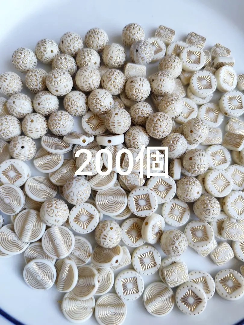 [限定]模様入りビーズ 200個セット アンティーク調アクリルビーズ まとめ売り