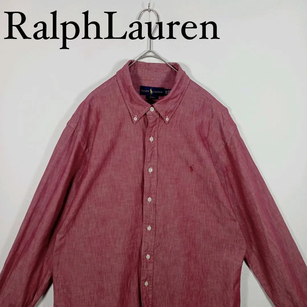 Ralph Lauren 長袖ボタンダウンシャツ 無地レッド ダンガリー XL