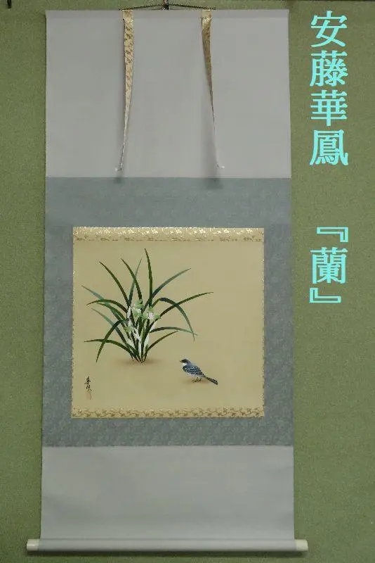 掛軸 安藤華鳳 『蘭』 共箱 【花鳥図】