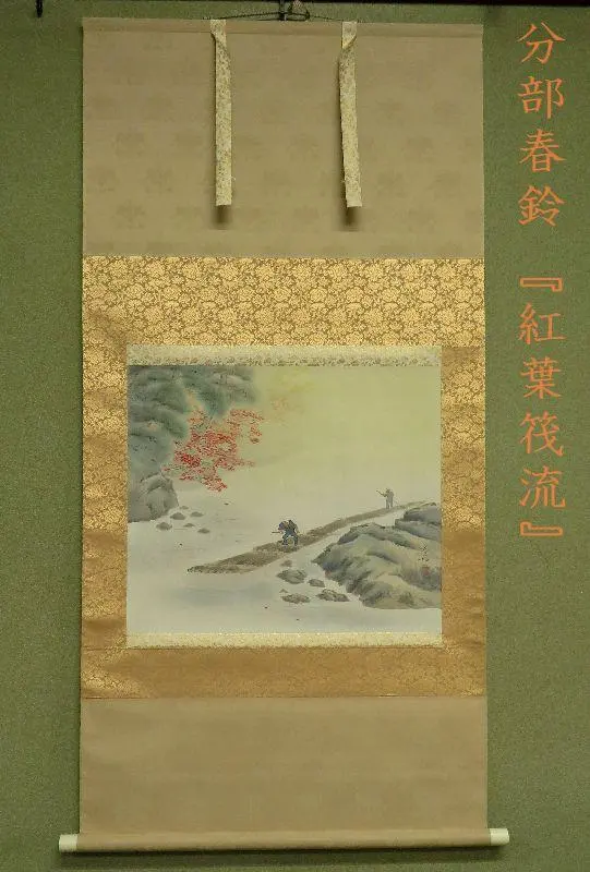 掛軸 分部春鈴 『紅葉筏流』 共箱 【川下り】