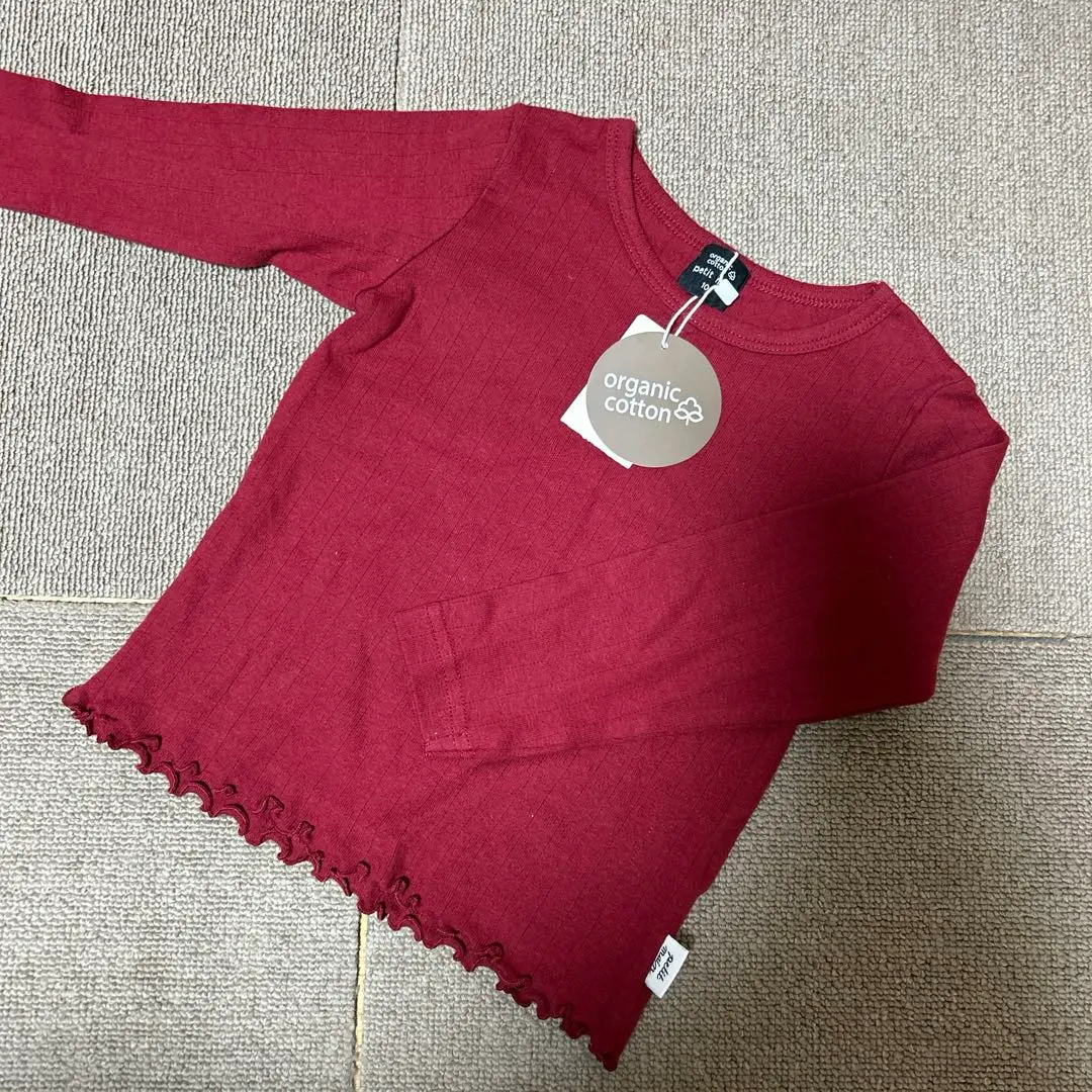petit main ハート針抜き長袖Tシャツ 100 オーガニックコットン 綿