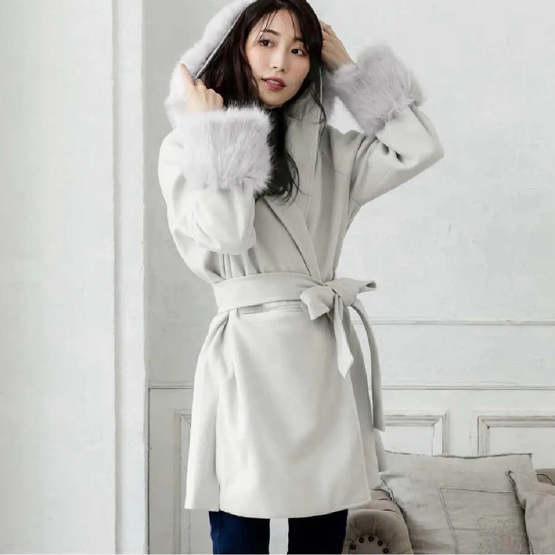 JULIA BOUTIQUE フェイクファー付きミドル丈ガウンコート