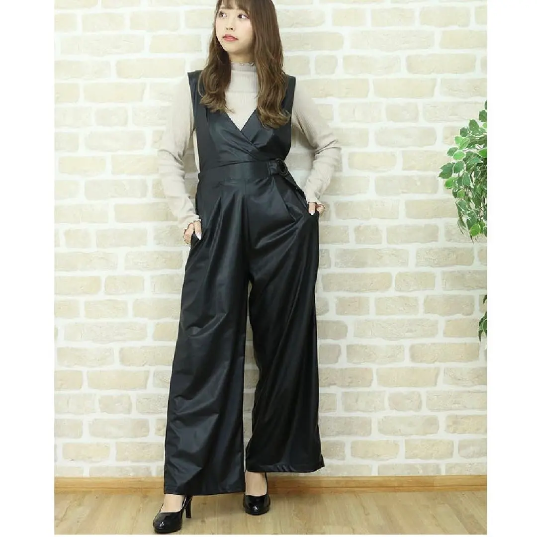 laulea ラウレア カシュクールワイドサロペット エコレザーワイドパンツ