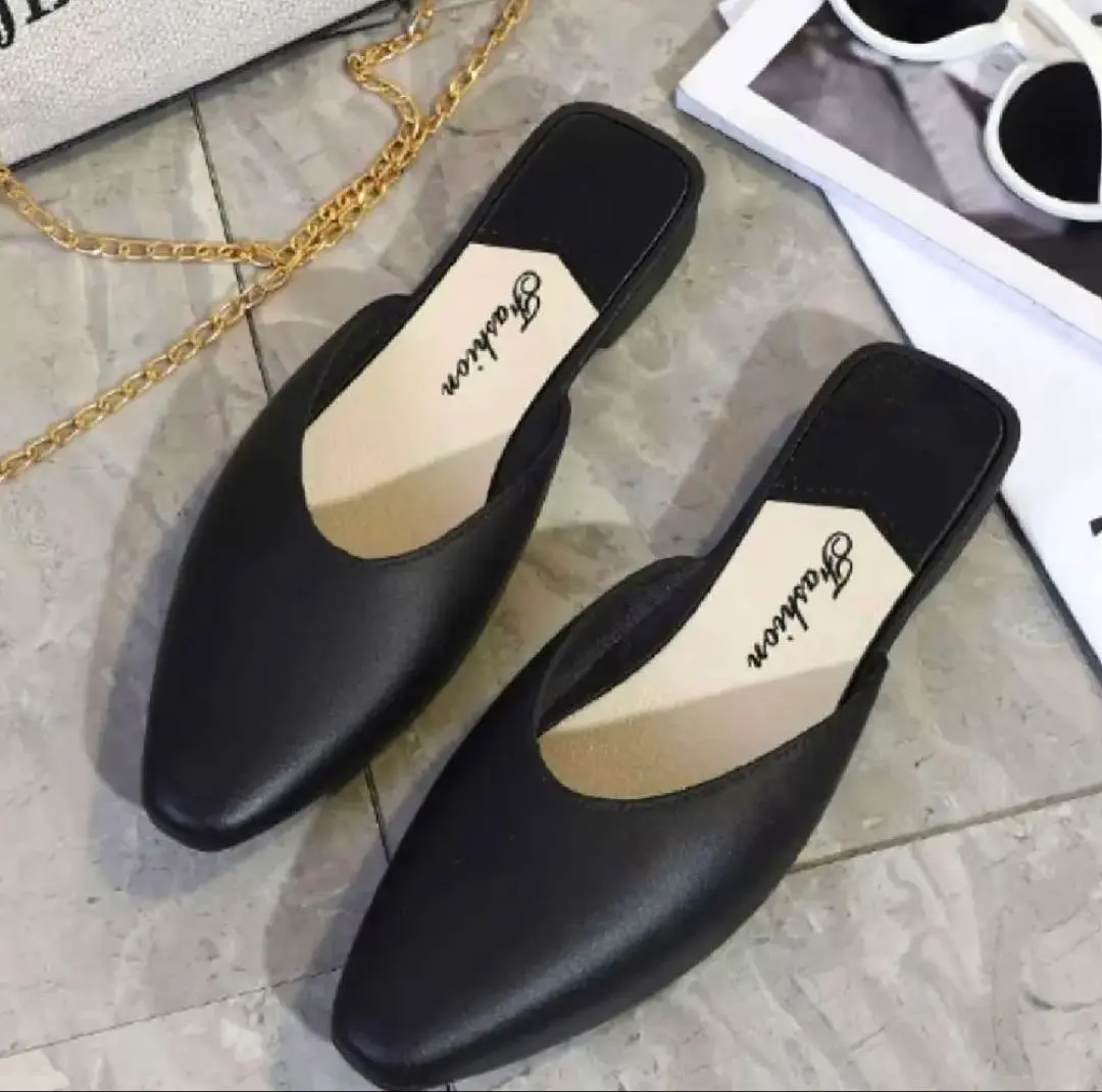 ミュール レディース 無印 ポインテッド 黒23.5cm ローヒール