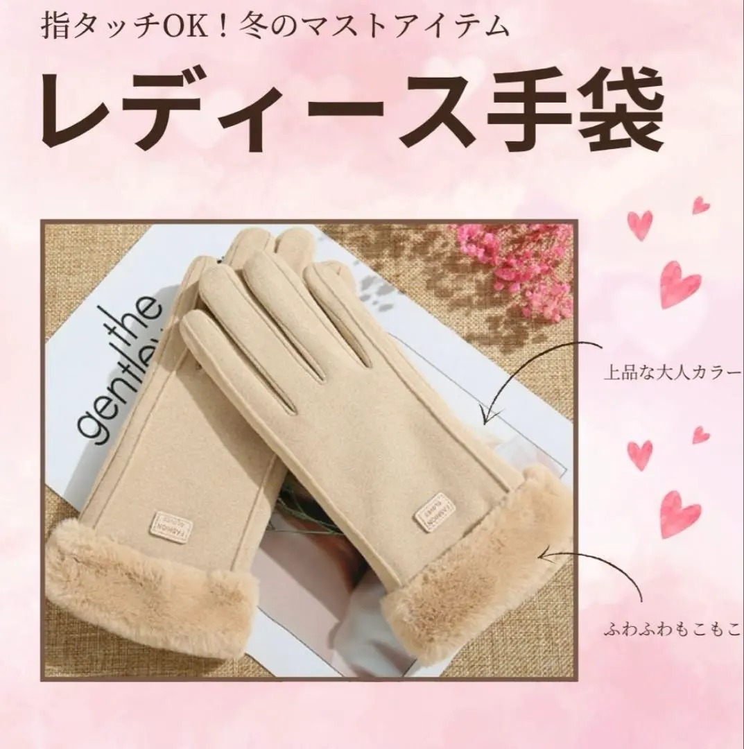 ベージュ手袋 スマホ対応 レディース 防寒 新品 小指に縫製糸あり
