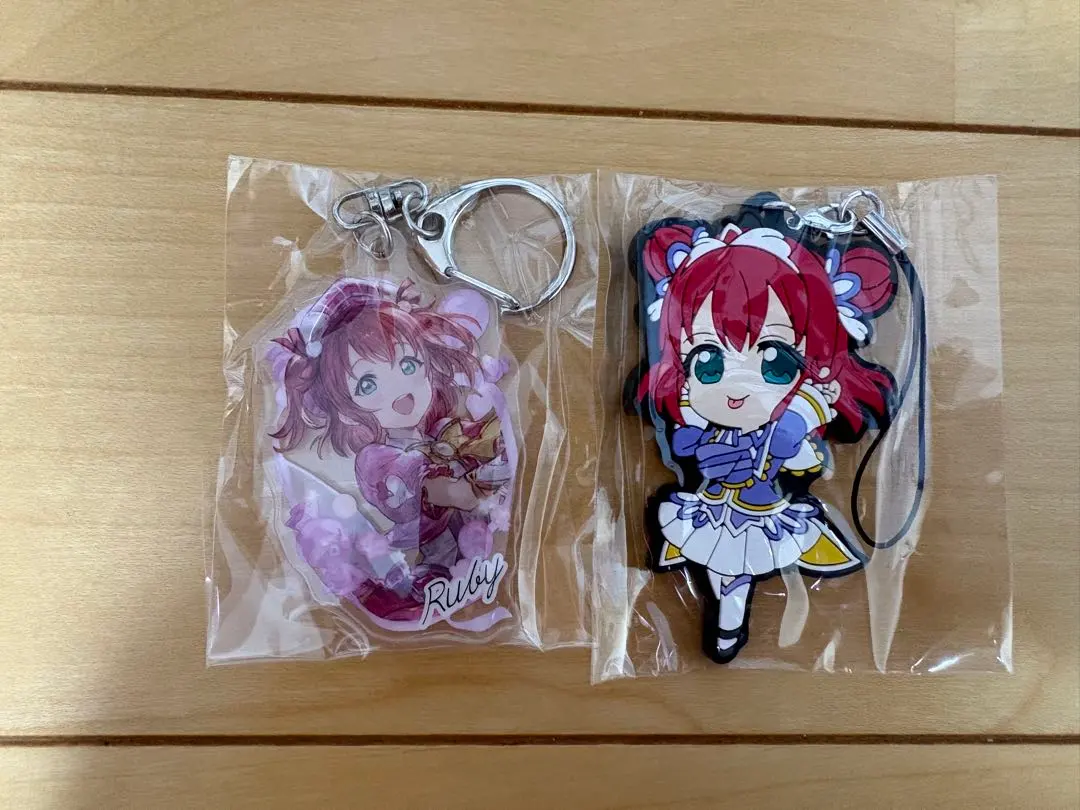 Aqoursクラブ活動応援キーホルダー 黒澤ルビィ 缶バッジ ラバーキーホルダー
