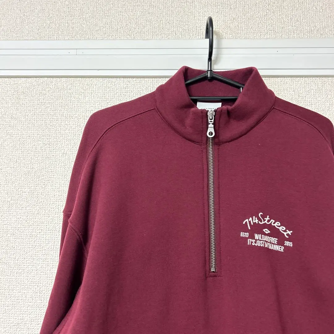 スウェット トレーナー ハーフジップ 韓国系 ワインレッド