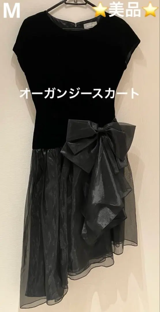 ⭐️美品⭐️フレンチスリーブ ブラックドレス オーガンジースカート M