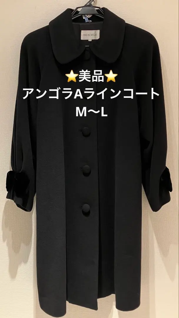 ⭐️美品⭐️ブラック ロングコート アンゴラ&ウール リボン付き