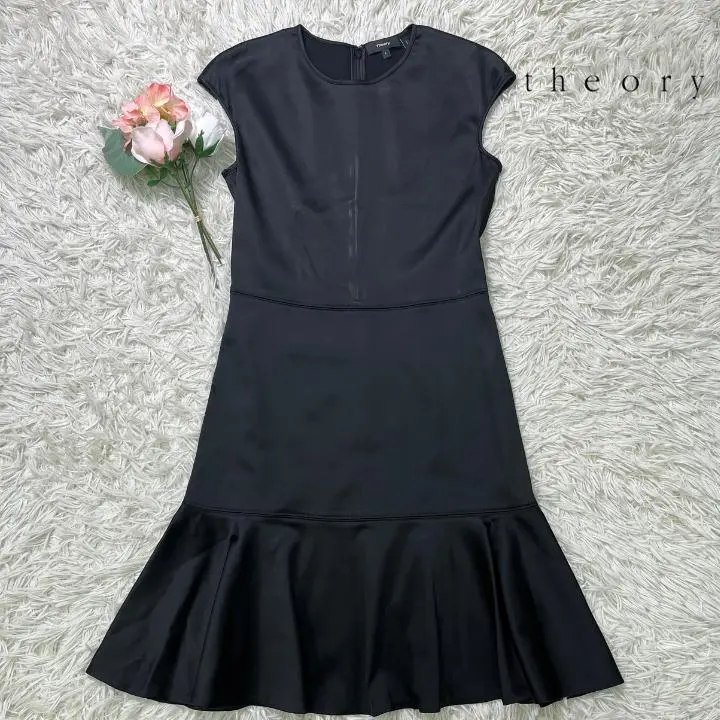 《美品》Theory セオリー ブラックワンピース 裾フレアー 7号S