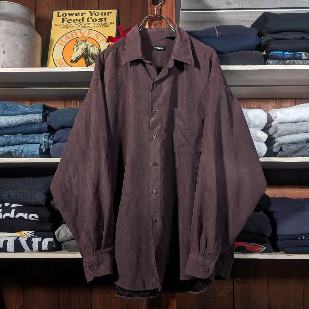 90s VAN HEUSEN フェイクスエードシャツ ビンテージ ダークブラウン