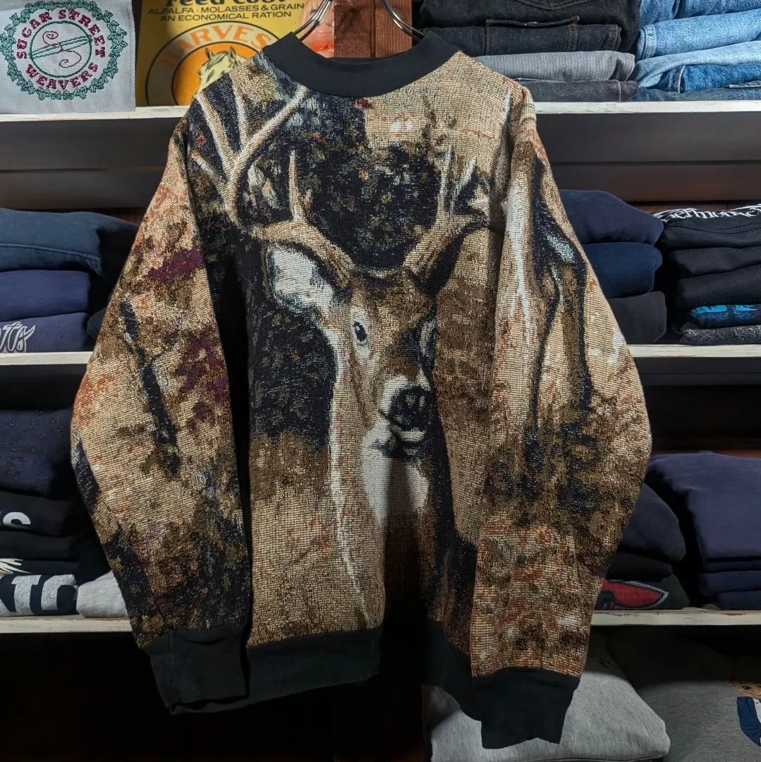 USA製 80s SUGER STREET モックネック アニマルスウェット 茶