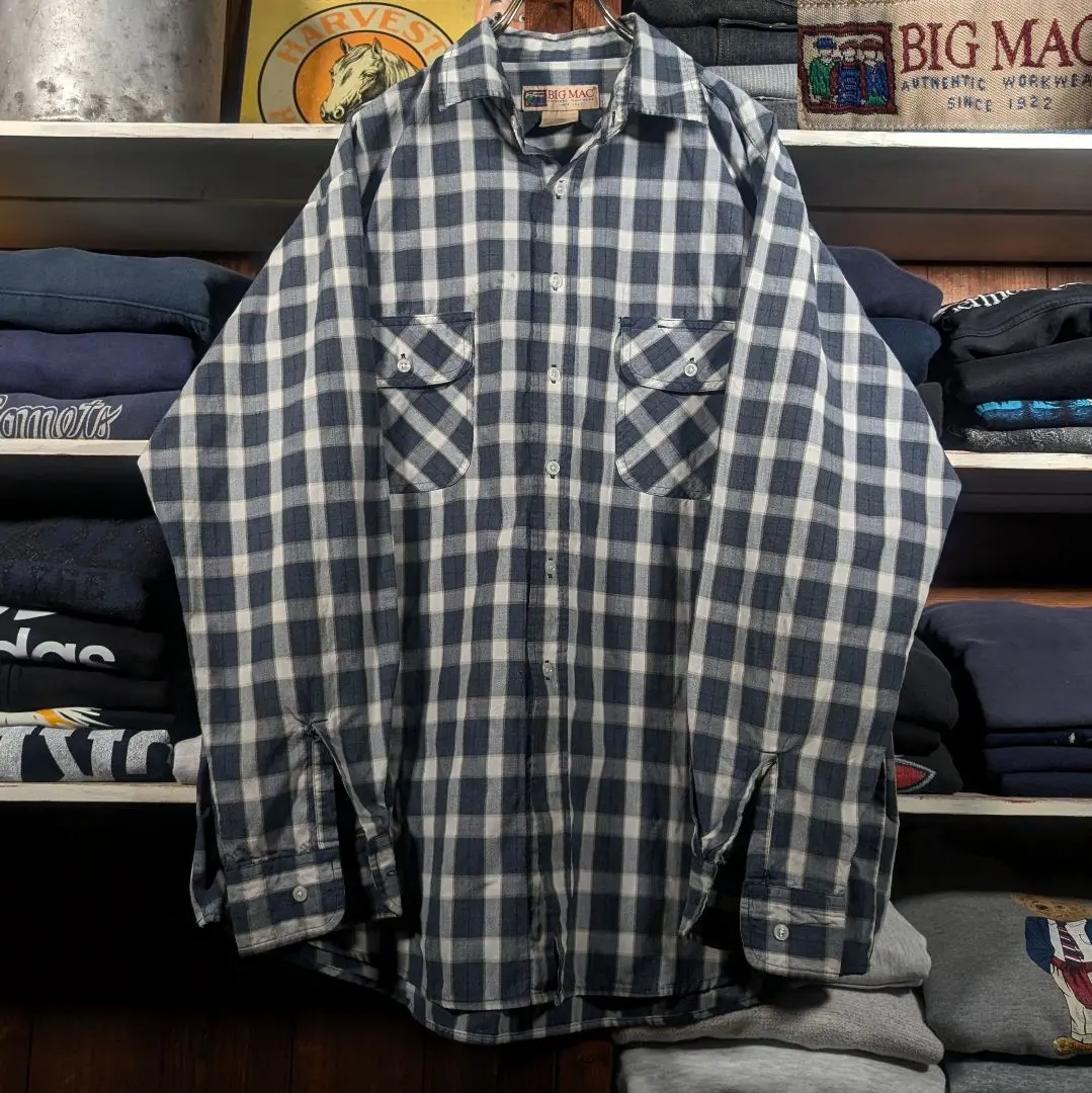 90s BIG MAC ビンテージ プリントシャツ ブロックチェック オンブレ