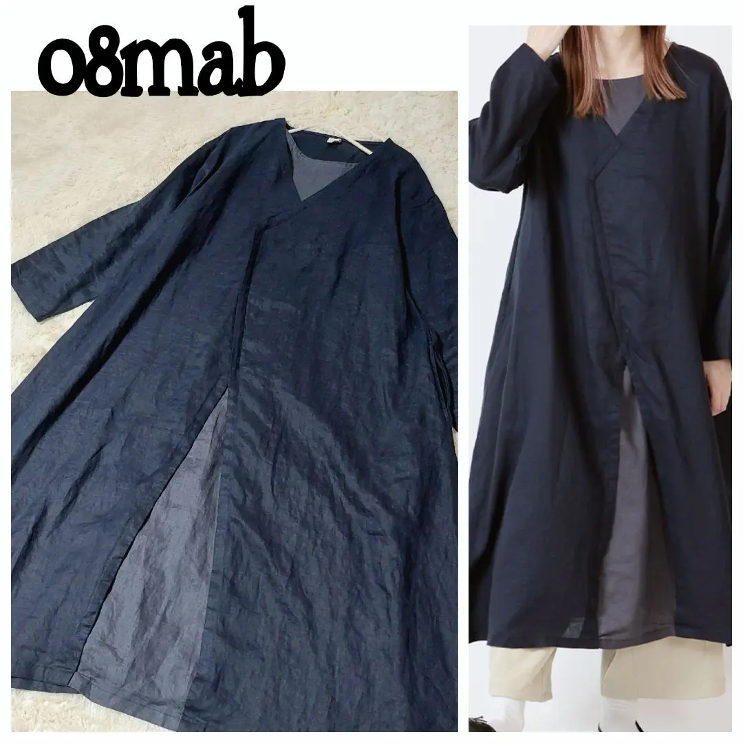 08mab ゼロハチマブ 14番手リネン 配色 切り替え重ね風 ロングワンピ