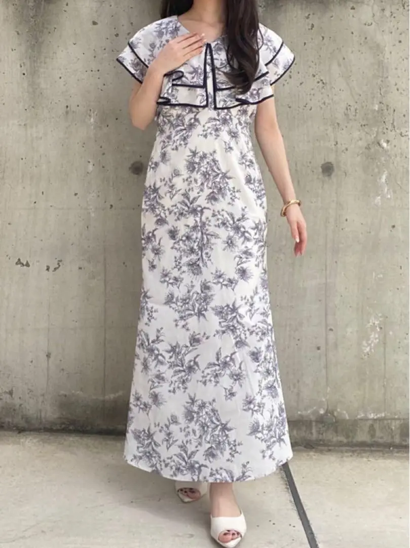grl 花柄配色パイピングフリルワンピース サイズal145
