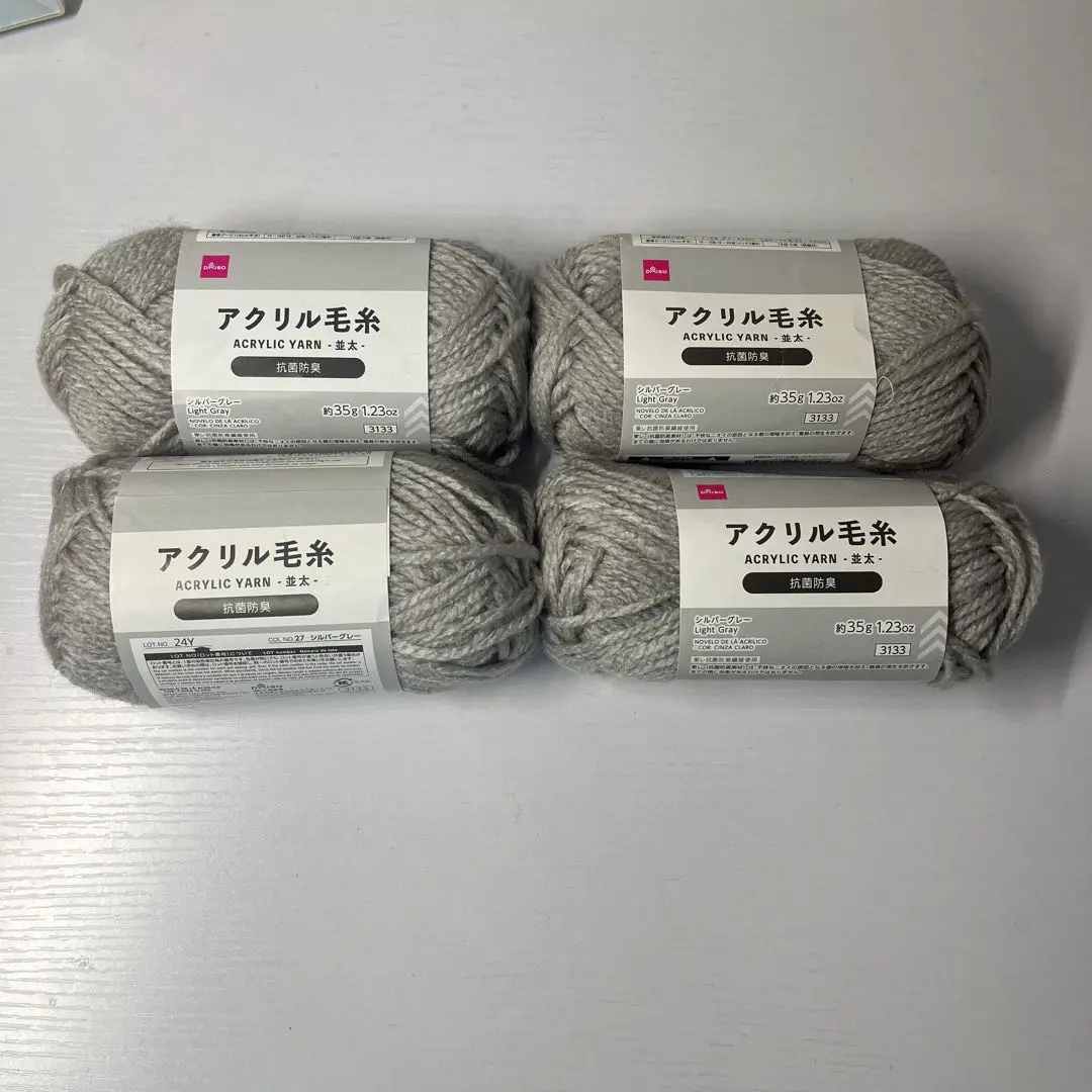 ダイソー アクリル毛糸 抗菌防臭 並太 シルバーグレー4玉