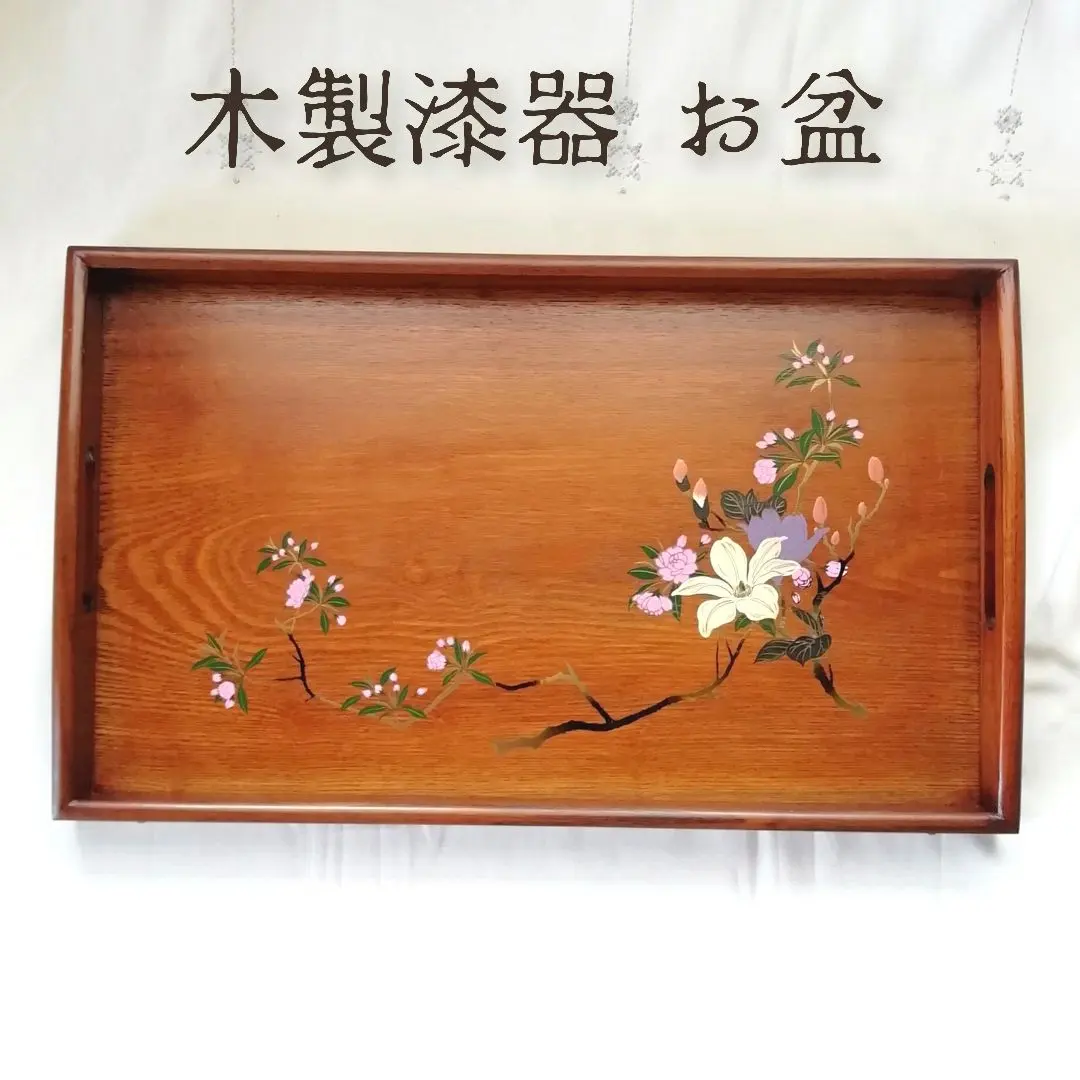 『木製漆器 お盆』使いやすい長手盆│天然木 木蓮│トレー