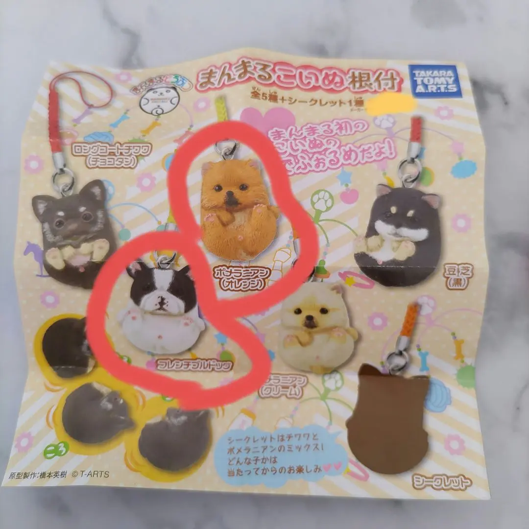 まんまるこいぬ根付 フレンチブルドッグ ポメラニアン オレンジ