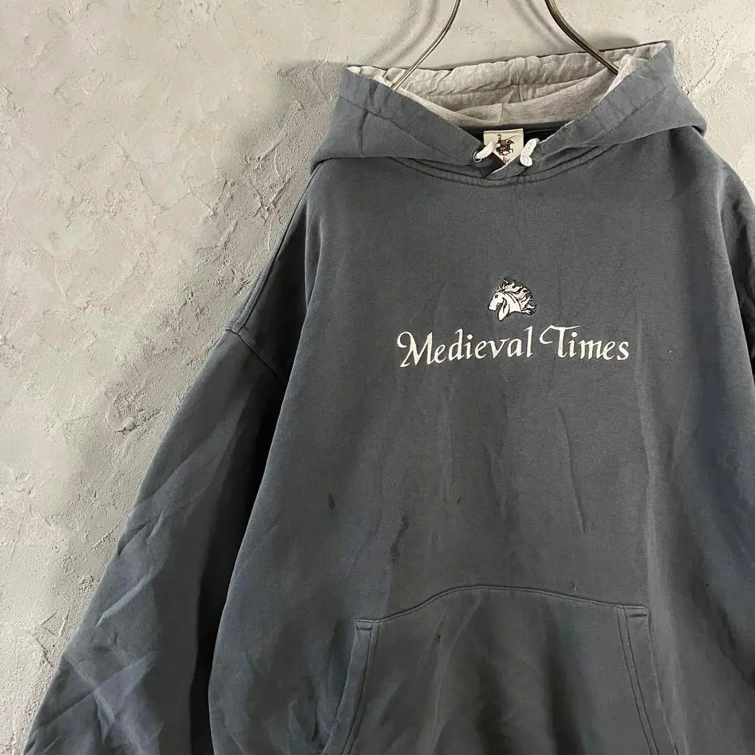 ヴィンテージ パーカー フーディー 刺繍ロゴ ゆるだぼ 裏起毛 グレー IW17