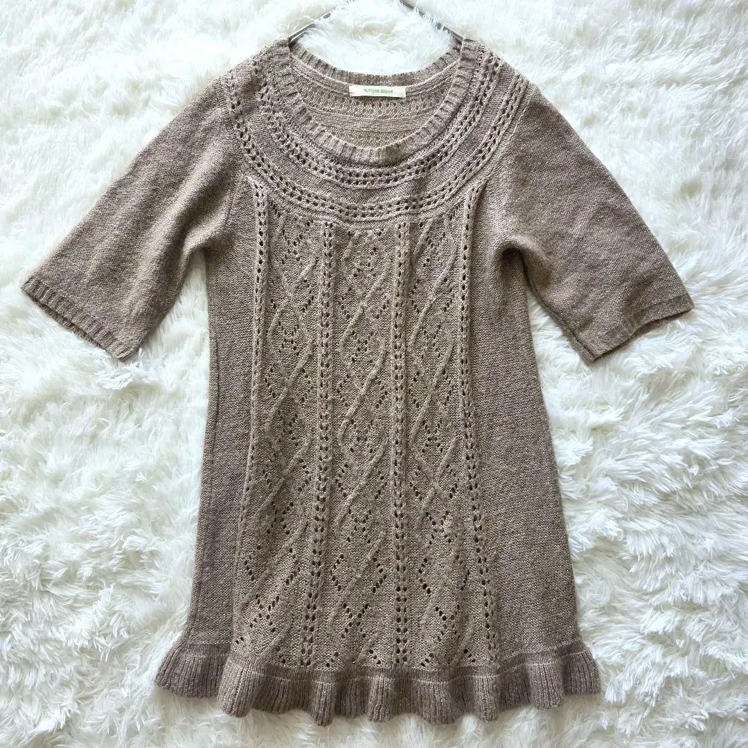 ニット セーター チュニック LL 半袖 透かし編み ナチュラル フェミニン