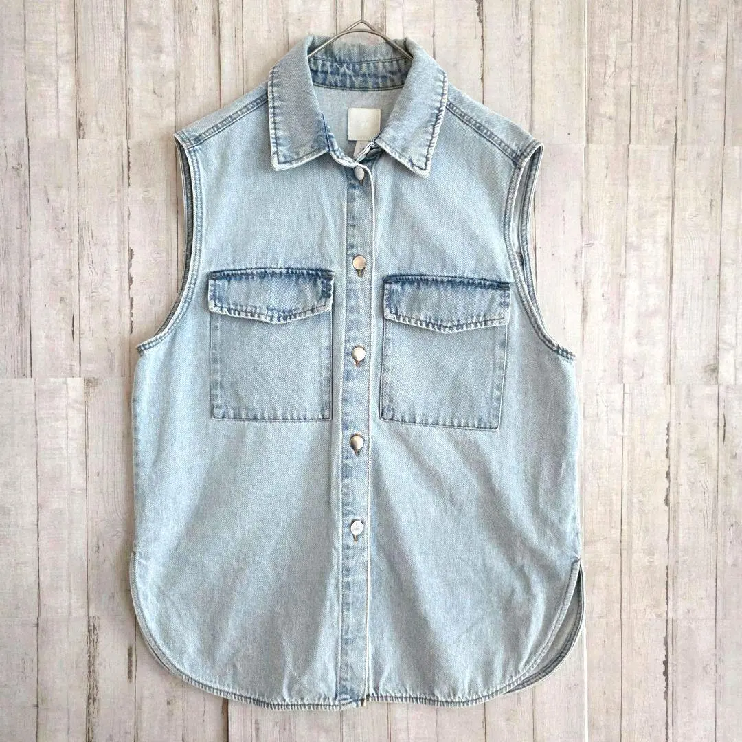 H&M デニム ベスト ノースリーブ 綿100% M ラウンドヘム カジュアル