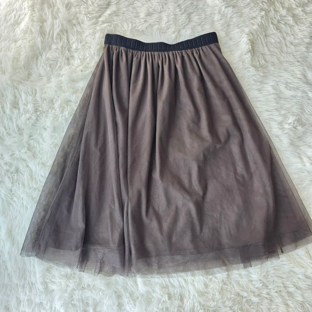 チュールスカート Lサイズ カーキ ミモレ丈 ウエストゴム 大人可愛い ふんわり