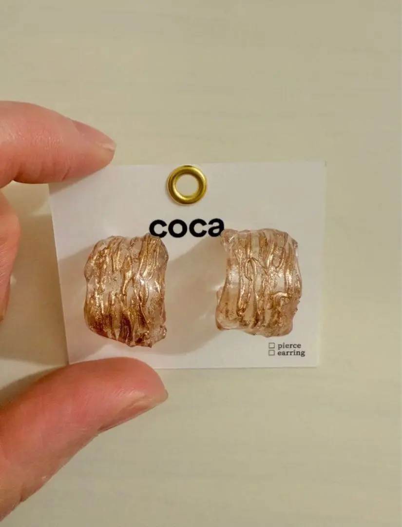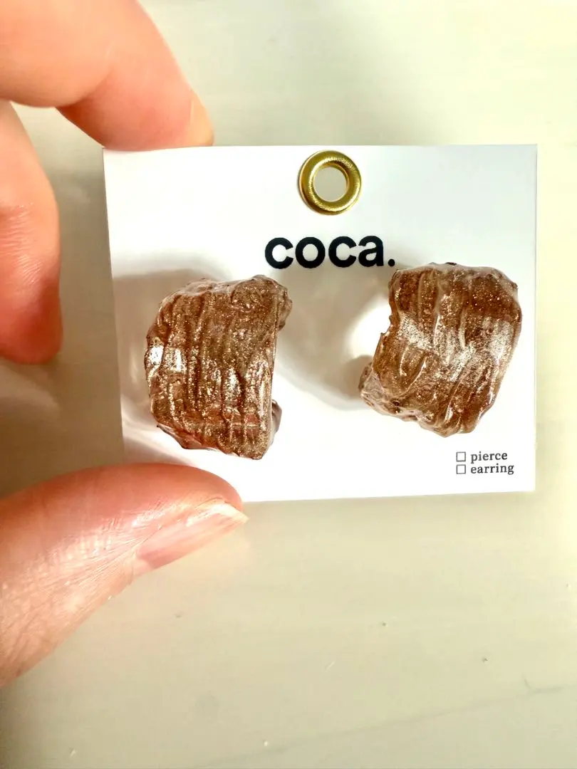 レジン 天然石 スモーキークォーツ ハンドメイド ピアス